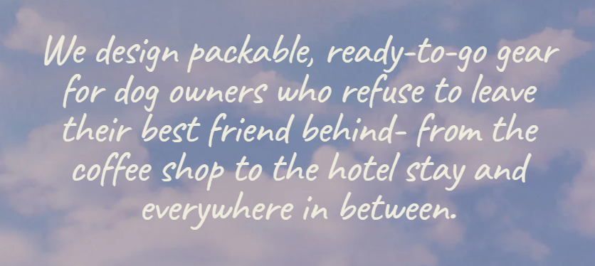 We design packable, ready-to-go gear for dog owners who refuse to leave their best friend behind- from the coffee shop to the hotel stay and everywhere in between.